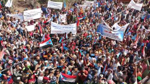 وجابت الجماهير الحاشدة التي توافدت من مديريات الضالع الشارع العام، حاملة صور الرئيس القائد عيدروس الزُبيدي رئيس المجلس الانتقالي الجنوبي، وأعلام دولة الجنوب، ولافتات تؤكد تمسكهم بفك الارتباط، مجددين تفويضهم للرئيس الزُبيدي بتمثيل شعب الجنوب لتحقيق استعادة الدولة الجنوبية كاملة السيادة ما قبل العام 1990.