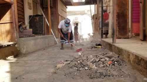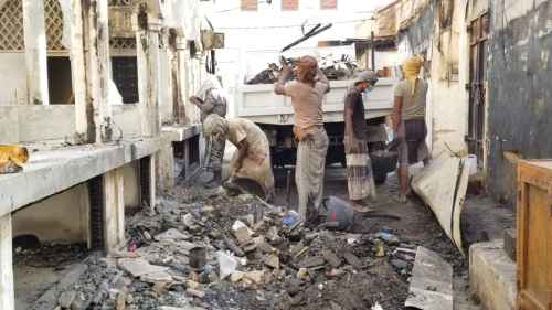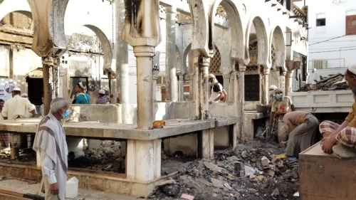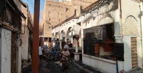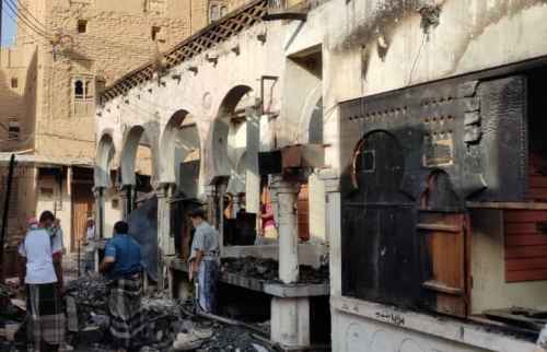 انتقالي تريم يدشن حملة إزالة مخلفات حريق سوق تريم الأثري