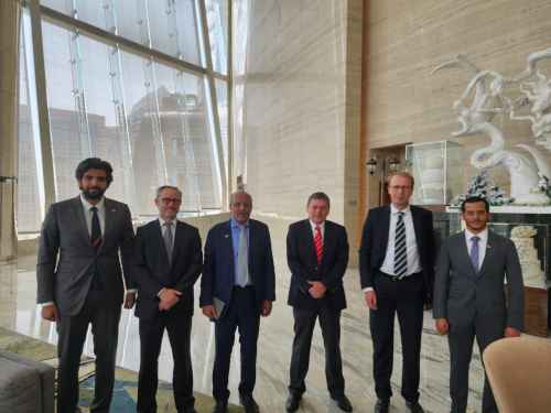 حضر اللقاء السيد فيليب شونبرون-نابمان، نائب رئيس وحدة الشرق الأوسط في الخارجية الألمانية، وعضوا الإدارة العامة للشؤون الخارجية نبيل بن لعسم، وعبد الله عوض.