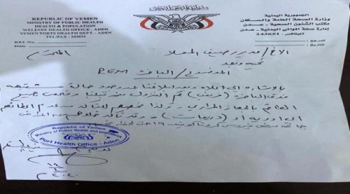 نفت إدارة صحة الموانئ بعدن الشائعات التي تم تداولها عن وجود شخص يشتبه بإصابته بفيروس كورونا المستجد على إحدى السفن في أرصفة المعلا، وقالت إنها عارية عن الصحة ولا أساس لها.