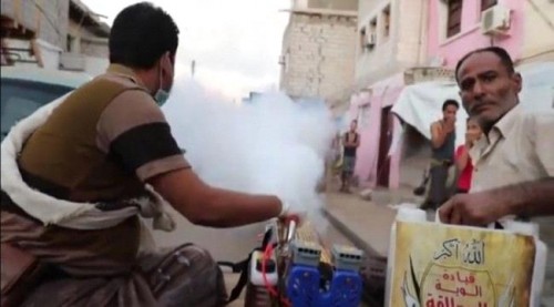 تنفذ الفرق التابعة لقوات العمالقة عمليات الرش الضبابي للأحياء السكنية والشوارع العامة في مديريات ومناطق متفرقة من العاصمة عدن، بالتزامن مع ارتفاع معدل خطر تفشي الأوبئة القاتلة.