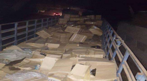 وأوضح أنه كان يتم نقل حمولة الشاحنة التي تحوي الثلاجات ووضعها في الشاحنة الأخرى التي تحوي كمية كبيرة من قطع غيار الدراجات النارية لغرض التمويه على النقاط الأمنية.
