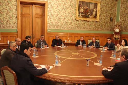 وعقد الرئيس الزُبيدي والوفد المرافق خلال الزيارة، لقاءً مطولا مع رئيس لجنة الشؤون الدولية بمجلس الدوما الدكتور ليونيد سلوتسكي ومسؤولين في المجلس.