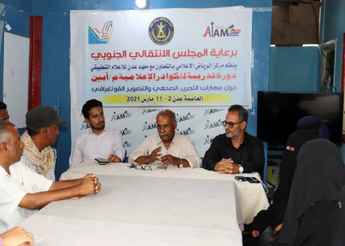 وبدوره عبر الأستاذ رياض منصور مدير مركز الرياض الإعلامي عن الشكر والتقدير للمجلس الانتقالي الجنوبي على رعاية هذه الدورة التي يشارك فيها عدد من الإعلاميين والاعلاميات الشباب من محافظة أبين.