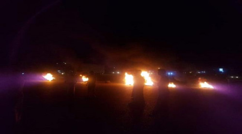 وأضرم شباب غاضبون في مديرية الريدة النيران في إطارات سيارات لقطع الطريق الدولي الرابط بين محافظتي حضرموت والمهرة.