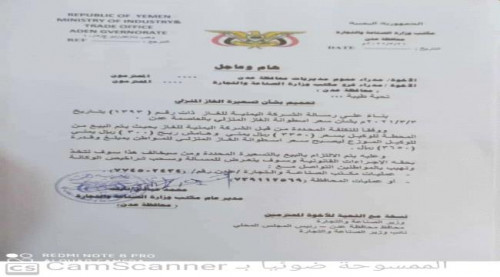 وياتي هذا التعميم بناءا على رسالة الشركة اليمنية للغاز ذات رقم (١٣٩٣) بتاريخ ٣/٣/٢٠٢١ والخاصة بسعر اسطوانة الغاز المنزلي بـ العاصمة عدن .