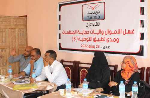 عقدت منظمة تجديد للتنمية والديمقراطية، صباح اليوم، في مقرها في مديرية المعلا، اللقاء التوعوي الأول حول: "غسل الأموال وتمويل الإرهاب وآليات حماية المنظمات ومدى تطبيق التوصية الثامنة".