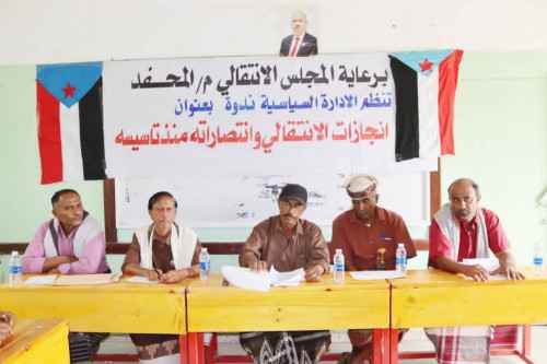 نظمت الإدارة السياسية بالهيئة التنفيذية للقيادة المحلية للمجلس الانتقالي الجنوبي في مديرية المحفد، اليوم الثلاثاء، ندوة سياسية بعنوان «إنجازات الانتقالي وانتصاراته منذُ تأسيسه»، بحضور نائب رئيس انتقالي المديرية مهدي عبدالله مقبل.