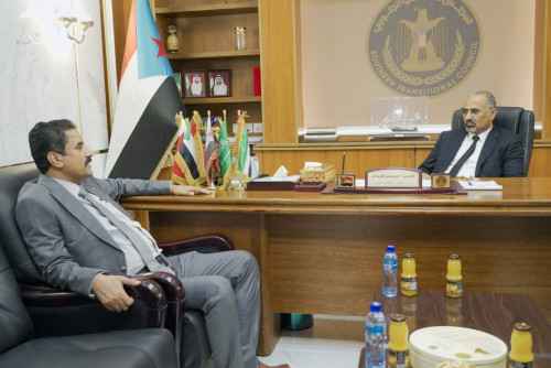 التقى الرئيس القائد عيدروس قاسم الزُبيدي رئيس المجلس الانتقالي الجنوبي، نائب رئيس مجلس القيادة الرئاسي، بمكتبه في العاصمة عدن صباح اليوم الإثنين، العميد علي احمد الجبواني رئيس الهيئة التنفيذية للقيادة المحلية للمجلس الانتقالي بمحافظة شبوة.
