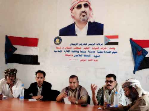 نظمت الإدارة الإعلامية في الهيئة التنفيذية للقيادة المحلية للمجلس الانتقالي الجنوبي في مديرية ميفعة بمحافظة شبوة، اليوم الأحد، دورة تدريبية لعدد من الإعلاميين بالمديرية.