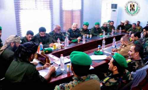 حيث ناقش الاجتماع عددا من النقاط التي تخص عمل قوات الحزام الامني بشكل عام ، ومستوى تنفيذ الخطط والبرامج المعدة من القيادة العامة، منها تطوير الهيكل الاداري والتنظيمي،وتوفير الاحتياجات، ومعالجة الاشكالات التي رافقت عمل الازمة خلال الفترات السابقة ،والرفع بالقضايا الى الجهات المختصة النيابات والمحاكم فور الانتهاء من تجهيز الملفات ، وكذا الاعداد للدورات التأهيلية بالمشاركة مع القوات البرية ،وقوات العمالقة.