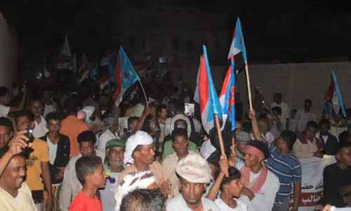 ورفع المتظاهرون المتوافدون من مراكز حي القرن ومريمه وحوطة سلطانة، لافتات تطالب بسرعة إخراج قوات العسكرية الأولى الخاضعة لسيطرة تنظيم الإخوان الإرهابي من وادي حضرموت.