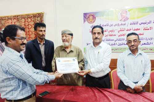 واشار مدير الادارة الثقافية الدكتور متعب العلهي الى ان التكريم يأتي في إطار انشطة الادارة الثقافية بالمحافظة، والاهتمام بفناني وشعراء ابين لما يقوموا به من دورا في حفظ التراث الجنوبي عموما.