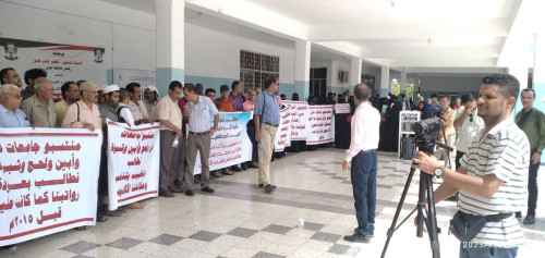 نظمت نقابة هيئة التدريس والتدريس المساعدة والموظفين الإداريين بجامعات عدن ولحج وأبين وشبوة وقفة احتجاجية حضرها المئات من منتسبي الجامعات للمطالبة بالحقوق المسلوبة وذلك في ساحة كلية الطب بخومكسر تدشيناً للإضراب الذي أعلنت النقابة تطبيقه من يومنا هذا الأحد ١٧سبتمبر ٢٠٢٣م