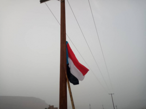 وكان البدء بتدشين رفع الاعلام والصور في عاصمة المديرية صناء، وستستمر عملية رفع صور الرئيس القائد والإعلام الجنوبية في مناطق المديرية المختلفة.