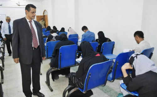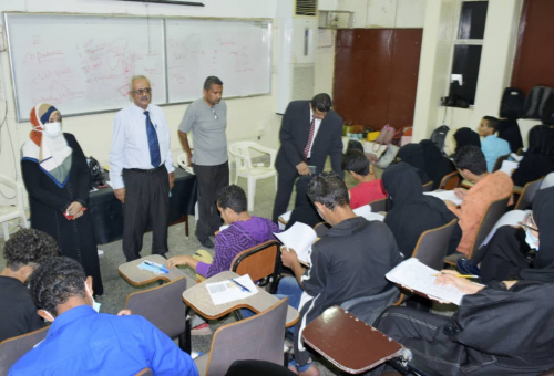 بعد ذلك قام مسجل عام جامعة عدن ومعه مساعد نائب رئيس الجامعة بتفقد قاعات الإمتحانات والإستماع إلى ملاحظات الطلاب وإعطاء النصائح لهم بكيفية التعامل مع أسئلة الإمتحانات التي تمت بالطريقة الأمريكية والتي يعتمد فيها بالتظليل على الإجابة الصحيحة ..مشددين على كافة الطلاب المتنافسين بضرورة التأكد من إجباتهم وكشف التوقيح الخاص بالحضور والإنصراف قبل مغادرة قاعة الإمتحانات.