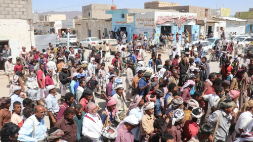 وتوافدت الحشود الجماهيرية الكبيرة من مختلف مناطق وقرى مديرية نصاب، الى مخيم ساحة الاعتصام. التي دعت اليها منظمات المجتمع المدني والمجلس الاهلي بالمديرية.