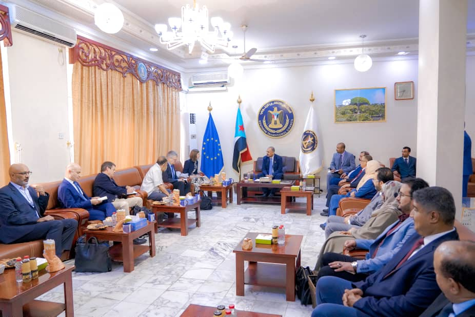 استقبل الرئيس القائد عيدروس قاسم الزُبيدي رئيس المجلس الانتقالي الجنوبي، في مكتبه بالعاصمة عدن، اليوم الأربعاء، وفداً رفيع المستوى من دول الاتحاد الأوروبي، الذي وصل إلى عدن مساء أمس في زيارة رسمية.
