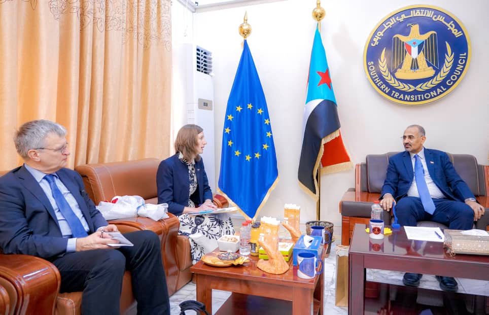 ونوّه الرئيس القائد بأن زيارة بعثة الاتحاد الأوروبي للعاصمة عدن، تمثّل دفعا لجهود السلام وإنهاء الحرب، ودعماً لاتفاق الرياض الذي ترعاه المملكة العربية السعودية.
