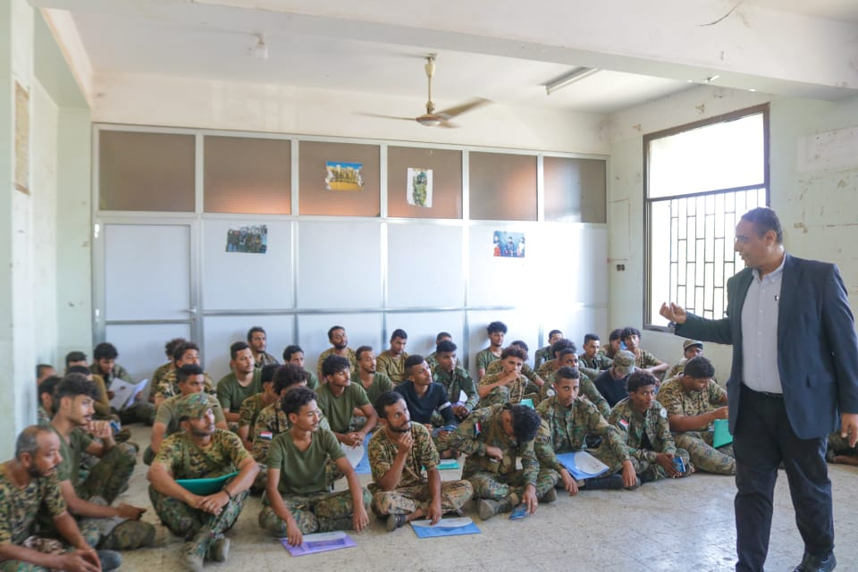 وفي الدورة التي تستمر لمدة يومين متتاليين تلقى المتدربون من منتسبي القطاع الثامن في الحزام الأمني محاضرة ألقاها البروفسور علي عولقي أستاذ القانون الدولي وحقوق الإنسان ، حيث تعرف المتدربون على أهمية حسن التعامل مع المواطنين أثناء تأدية واجبهم الوطني بما يتلائم مع القانون الدولي الانساني و القانون الدولي لحقوق الإنسان .