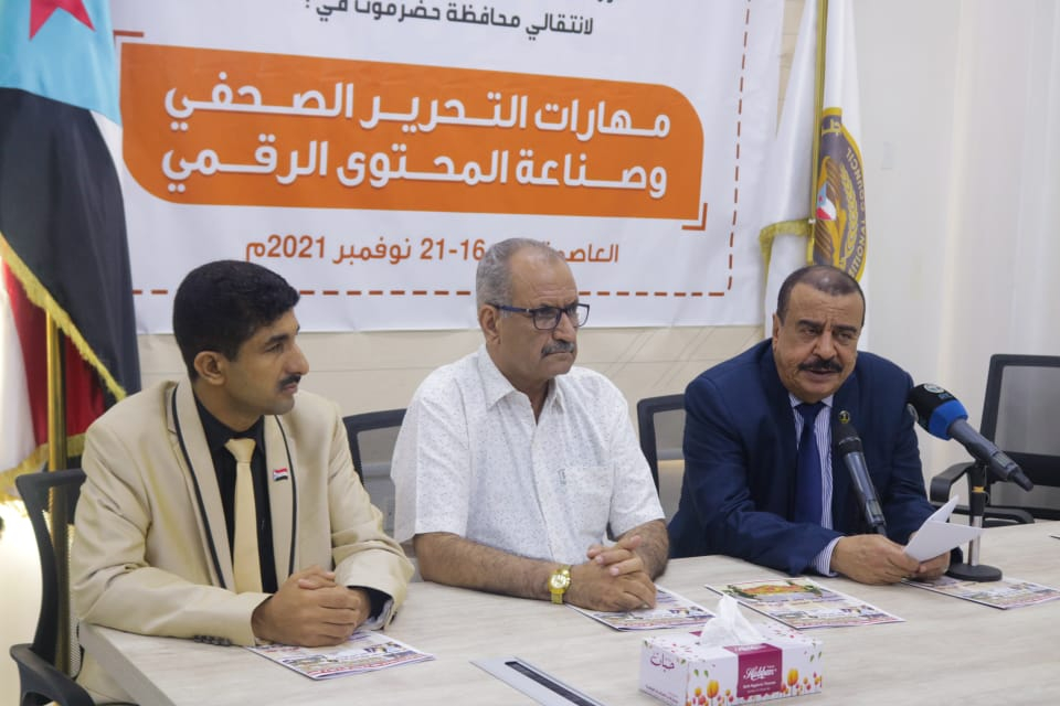 هذا وقد كان الدكتور باسم منصور، رئيس الدائرة الإعلامية بالأمانة العامة للمجلس، عضو الهيئة الوطنية للإعلام الجنوبي، قد افتتح تدشين الدورة بكلمة رحب بالحاضرين والمشاركين من محافظة حضرموت، مشيرا إلى أن هذه الدورة التدريبية التي تقام برعاية كريمة من الرئيس القائد عيدروس الزبيدي، رئيس المجلس، هي جزء من نشاط الدائرة الإعلامية بشكل خاص، والهيئة الوطنية بشكل عام، للعمل على استعادة الإعلام الجنوبي لمكانته وإعادة بنائه بالشكل السليم، وذلك من خلال برنامج تدريبي إعلامي حافل بمهارات إعلامية حديثة ومهمة لمواكبة الإعلام الحديث والمتطور، متمنيا للمشاركين في الدورة التدريبية التوفيق والنجاح فيما سيتلقونه والعمل على تطبيقه على أرض الواقع.