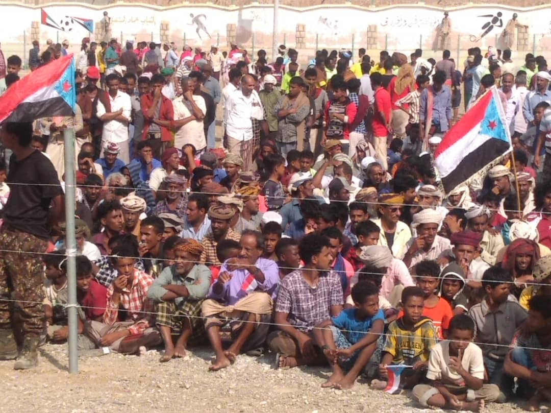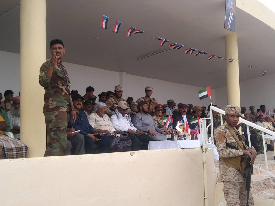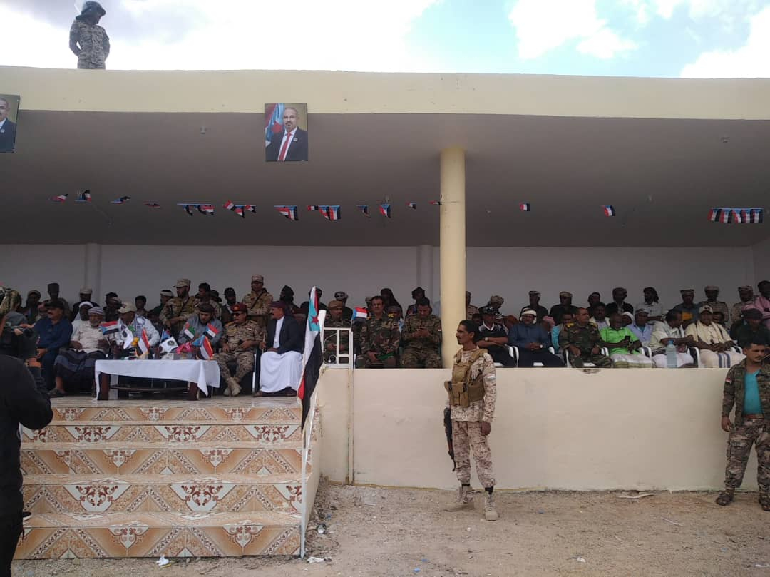 وشهدت الاحتفالية، التي استهلت بآي من الذكر الحكيم، ثم النشيد الوطني الجنوبي، حضور رسميا وجماهيريا كبيرا تقدمه رئيس الهيئة التنفيذية للقيادة المحلية للمجلس الانتقالي بالمحافظة رأفت الثقلي، ونائبه ناظم بن قبلان، والسلطان علي بن عيسى بن عفرار، ومدير عام الشرطة العميد علي الدكسمي وأركان اللواء الأول مشاة بحري العميد محسن الحاج.