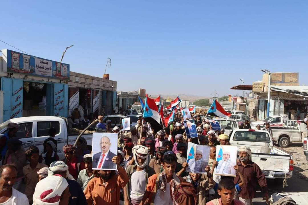 نظمت القيادة المحلية للمجلس الانتقالي الجنوبي بمديرية الوضيع بمحافظة أبين، اليوم الثلاثاء، مسيرة جماهيرية حاشدة ومهرجانا خطابا كبير احتفاءً بالذكرى الـ 54 لعيد الاستقلال الوطني المجيد 30 نوفمبر.