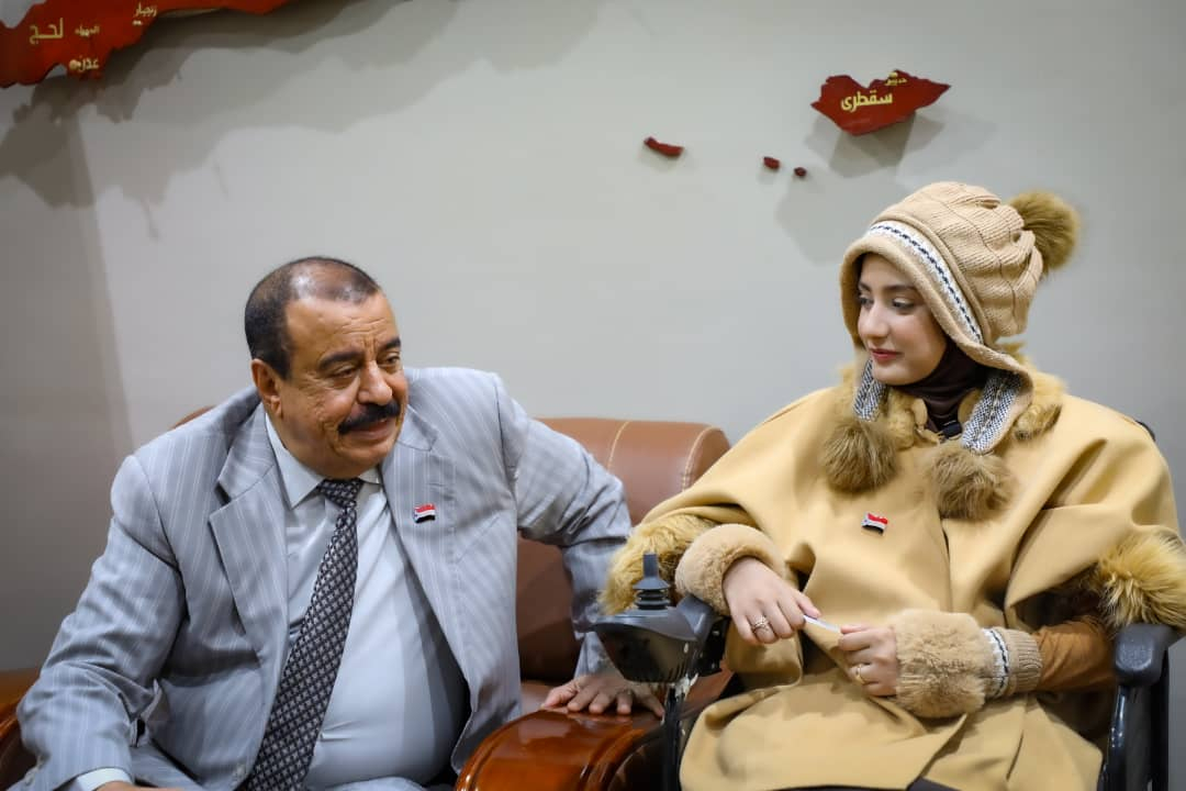 التقى اللواء الركن أحمد سعيد بن بريك، القائم بأعمال رئيس المجلس الانتقالي الجنوبي، رئيس الجمعية الوطنية اليوم الإثنين، الناشطة المجتمعية الرميصاء حسين يعقوب رئيسة الشبكة الوطنية لمناصرة حقوق ذوي الهمم.
