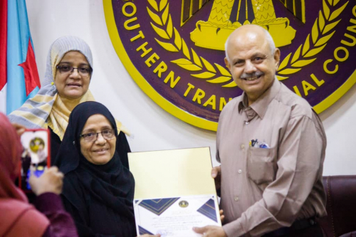 هذا وشمل التكريم الذي اقيم في قاعة مقر الامانة العامة للمجلس بالتواهي، تكريم عدد «16» معلمة من قدامى معلمات الزمن الجميل بمراحل التعليم الابتدائي والثانوي، اللواتي ساهمن في الارتقاء بالعلم والتعليم وكان لهن دورا بارزا وبصمة واضحة في اخراج جيل عظيم متسلح بالعلم والمعرفة على مر الاجيال في عموم مدارس العاصمة عدن.