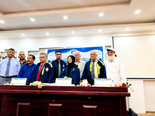 وتكونت لجنة المناقشة من أ.م.د. صالحة محمد علي رئيسًا ومناقشًا داخليًا من جامعة عدن، وأ.م. د. حسين سعيد الملعسي عضوًا ومشرفًا علميًا من جامعة عدن، وأ.م. د. محمد صالح الكسادي عضوًا ومناقشًا خارجيًا من جامعة حضرموت.