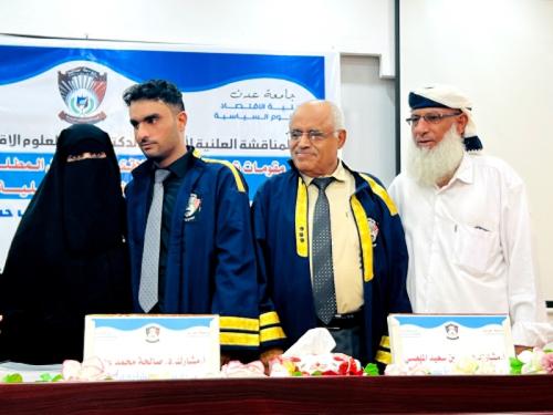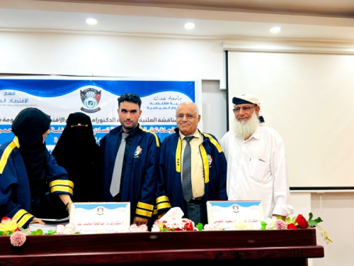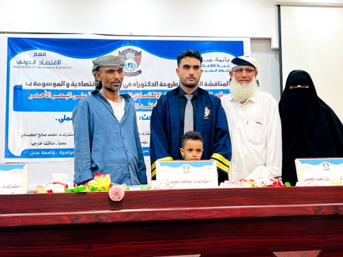 نال الباحث صالح شائف حسين القملي درجة الدكتوراه بتقدير عام امتياز من كلية الاقتصاد والعلوم السياسية بجامعة عدن عن أطروحته الموسومة بـ (مقومات تحقيق التكامل الاقتصادي للدول المطلة على البحر الأحمر وآفاقه المستقبلية).