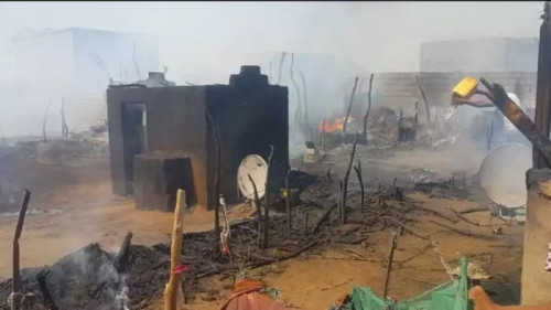 وقالت مصادر محلية إن حريقًا دمر عشرات المنازل المبنية من القش في مخيم النازحين بقرية المعترض بمديرية الزهرة والتي تُعد من المناطق الخاضعة لسيطرة مليشيا الحوثي الإرهابية.