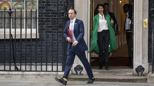 وكانت صحيفة ”ذا صن“ البريطانية قد نشرت صورا تُظهر على ما يبدو الوزير هانكوك وهو يُقبّل مساعدة بارزة ويعانقها بحميمية.