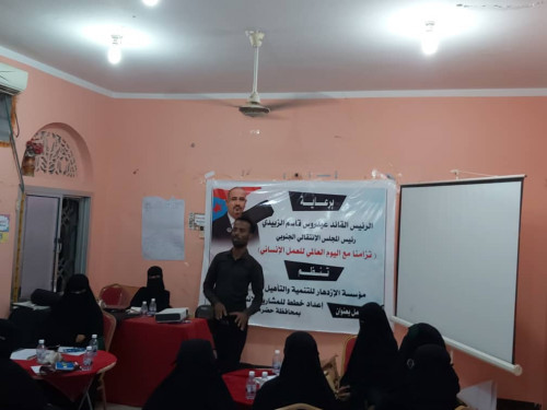 نظمت مؤسسة الازدهار للتنمية والتأهيل بحضرموت، برعاية كريمة من الرئيس القائد عيدروس قاسم الزُبيدي رئيس المجلس الانتقالي الجنوبي، ورشة عمل للمرأة الجنوبية بعنوان "إعداد خطط للمشاريع الإنسانية" وذلك بالتزامن مع اليوم العالمي للعمل الإنساني.
