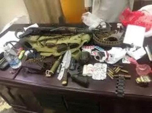وكشفت الاجهزة الامنية عن ضبط المدعو( س ع ا ) في أحد فنادق سيحوت وبحوزته أسلحة شخصية وذخائر وقنبلة دفاعية وبعض المواد المخدرة والادوات التي تستخدم في تعاطيها.