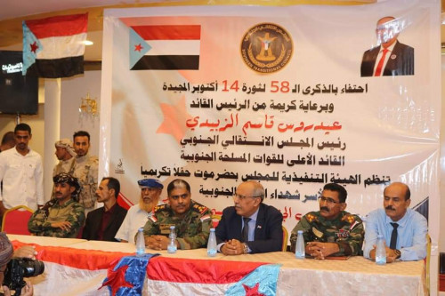 وفي الفعالية التكريميةؤ التي رعاها الرئيس القائد عيدروس قاسم الزبيدي رئيس المجلس الانتقالي الجنوبي، تحدث الأستاذ علي عبدالله الكثيري عضو هيئة رئاسة المجلس، رئيس الهيئة الوطنية للإعلام الجنوبي، المتحدث الرسمي لللمجلس بكلمة معبرا عن سعادته بالمشاركة في الاحتفال بالذكرى الثامنة والخمسين لثورة 14 أكتوبر المجيدة، بتكريم أسر الشهداء، ناقلا إليهم تحيات وتهاني الرئيس القائد عيدروس الزُبيدي .