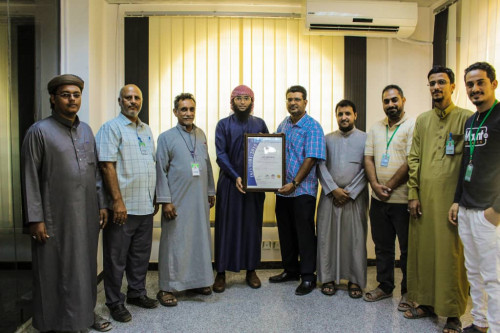 وسلم ممثلون عن الشركة الأم (Accurate global) الشهادة لإدارة طيبات عدن للتجارة والاستيراد في مقر الشركة بعدن.