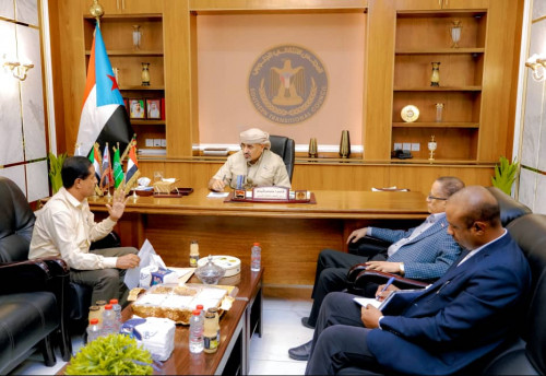 واستمع الرئيس القائد خلال لقائه بالشقي، لشرحٍ وافٍ عن آخر مستجدات الوضع العام في المحافظة، والتحديات التي تواجه عمل القيادة المحلية بالمحافظة، وفي مقدمتها محاولات تغيير التركيبة السكانية التي تتعرض لها مديريات الدلتا أبين، من خلال تمليك وبيع مساحات شاسعة من أراضي الدلتا لنازحين، في مسعى ممنهج لتوطينهم، بغية إحداث تغيير ديموغرافي في المحافظة.