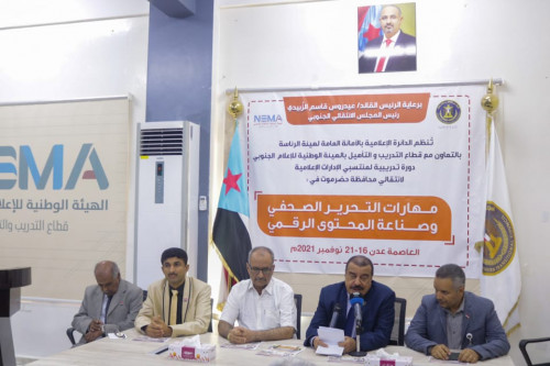 دشَّن اللواء أحمد سعيد بن بريك، القائم بأعمال رئيس المجلس الانتقالي الجنوبي، رئيس الجمعية الوطنية، ومعه الأستاذ فضل محمد الجعدي نائب الأمين العام للأمانة العامة لهيئة رئاسة المجلس، اليوم الثلاثاء، في العاصمة عدن، الدورة التدريبية التي نظمتها الدائرة الإعلامية بالأمانة لهيئة رئاسة المجلس الانتقالي، بالتعاون مع قطاع التدريب والتأهيل بالهيئة الوطنية للإعلام الجنوبي، في "مهارات التحرير الصحفي وصناعة المحتوى الرقمي" لمنتسبي الإدارات الإعلامية في الهيئات التنفيذية للقيادات المحلية للمجلس بمحافظة حضرموت.