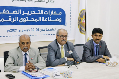 وفي الدورة التي حملت عنوان " مهارات التحرير الصحفي وصناعة المحتوى الرقمي"، ألقى الأستاذ فضل محمد الجعدي نائب الأمين العام للأمانة العامة لهيئة رئاسة المجلس الانتقالي، كلمة رحب فيها بالمشاركين من محافظتي شبوة، والضالع ، معبرا عن سعادته بتواجدهم في العاصمة عدن لتلقي المعارف العلمية والتطبيقية في الإعلام .