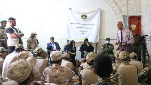 دشنت دائرة حقوق الإنسان في الأمانة العامة لهيئة رئاسة المجلس الانتقالي الجنوبي، اليوم الثلاثاء ، ورشة توعوية لمنتسبي قوات العاصفة بمعسكر 20 يونيو في العاصمة عدن.