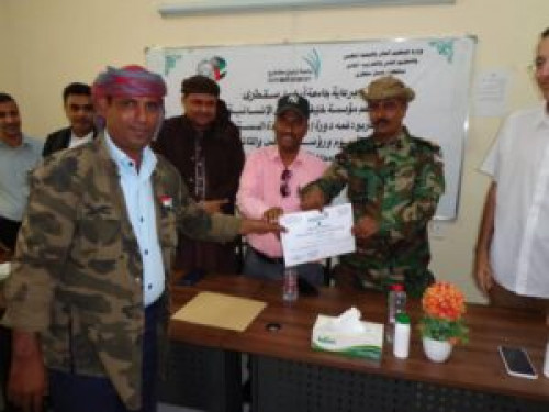 كرم مدير أدارة أمن محافظة أرخبيل سقطرى العميد علي محمد الدكسمي، اليوم الضباط المشاركين في الدورة التدريبية لإعداد القادة على المستوى الإداري للمكاتب التنفيذية والتي أقيمت في جامعة “سقطرى” في عاصمة المحافظة حديبو.