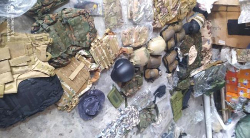 ضبط موظفي جمارك المنطقة الحرة بالعاصمة عدن، أحد الحاويات القادمة من الصين عقب تفتيشها مجموعة من الأجهزة لاسلكية العسكرية، وبطاريات اجهزة لاسلكية عسكرية، وشواحن وقواعد اجهزة لاسلكية عسكرية، بدلات عسكرية، جعب وشنط واحزمة وكوافي وواقيات ارجل عسكرية، واقيات ظهر عسكرية.