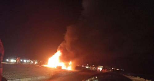 المصادر تقول أن احتراق السيارة كان كبير وقد احترق من بداخلها من أفراد.