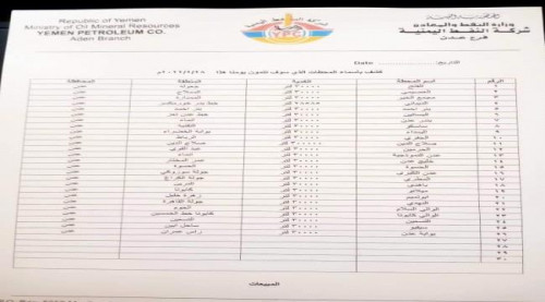 ونشرت شركة النفط عبر حسابها على فيسبوك كشف بأسماء المحطات الأهلية في مناطق ومديريات المحافظات الواقعة ضمن النطاق الجغرافي لتسويق شركة النفط عدن وهي :(عدن ، لحج ، أبين ، الضالع) والتي تم تموينها اليوم الإثنين ٢٨ فبراير ٢٠٢٢م من منشأة عدن الصغرى التابعة لشركة النفط عدن، وبالسعر الرسمي الجديد نظرا للإرتفاع في سعر المشتقات النفطية في الأسواق العالمية