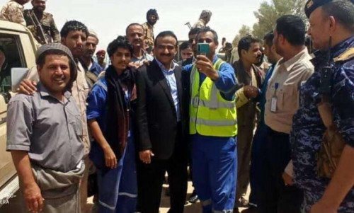 ووصل الوزير عقب ساعات من سيطرة وحدات من العمالقة والوية دفاع شبوة على الحقل النفطي.