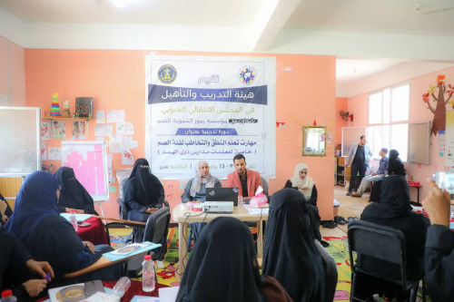 أقامت هيئة التدريب والتأهيل في المجلس الانتقالي الجنوبي بالتعاون مع مؤسسة رموز التنموية للصم والبكم، اليوم الأحد، في العاصمة عدن، دورة تدريبية بعنوان" مهارات تعلم النطق والتخاطب لفئة الصم والبكم" خاصة لمعلمات مدارس ذوي الهمم.