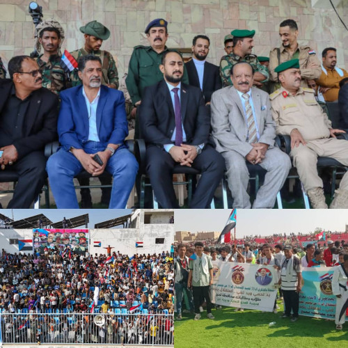 وشهد الحفل الذي أقيم في ملعب معاوية، حضوراً جماهيرياً كبيراً من مختلف قطاعات المجتمع في لحج، حيث انطلقت مسيرة جماهيرية حاشدة من أمام المؤسسة العامة للمياه بمدينة الحوطة مروراً بالشارع الرئيسي.
