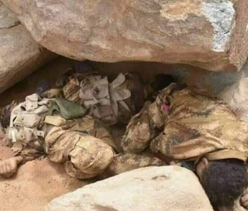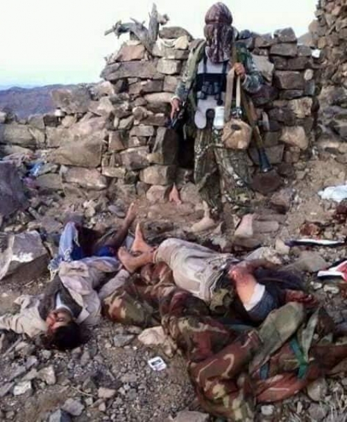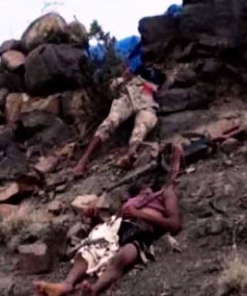 الأمين برس حصل على صور لجثث عناصر حوثية وهي متناثرة في الوديان والجبال في جبهات الحرب المشتعلة في مريس والعود ودمت بمحافظة الضالع .