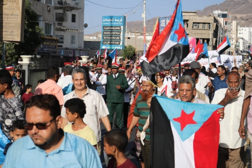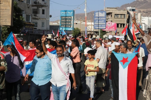 خرجت حشود جماهيرية في مديرية المعلا بالعاصمة عدن عصر اليوم السبت رافضة لإنعقاذ مجلس النواب اليمني في مدينة سيئون بحضرموت.